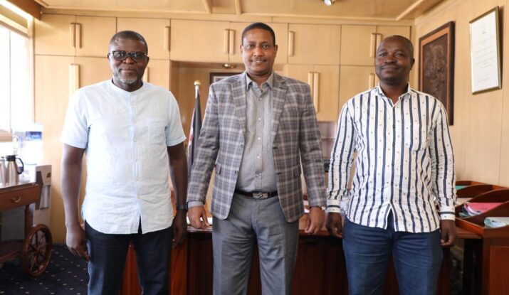 KUBICO Council Chairman (left), Dr. Mamo Boru Mamo, NEMA Director-General (centre), and KUBICO Secretary General (right) during the engagement.
